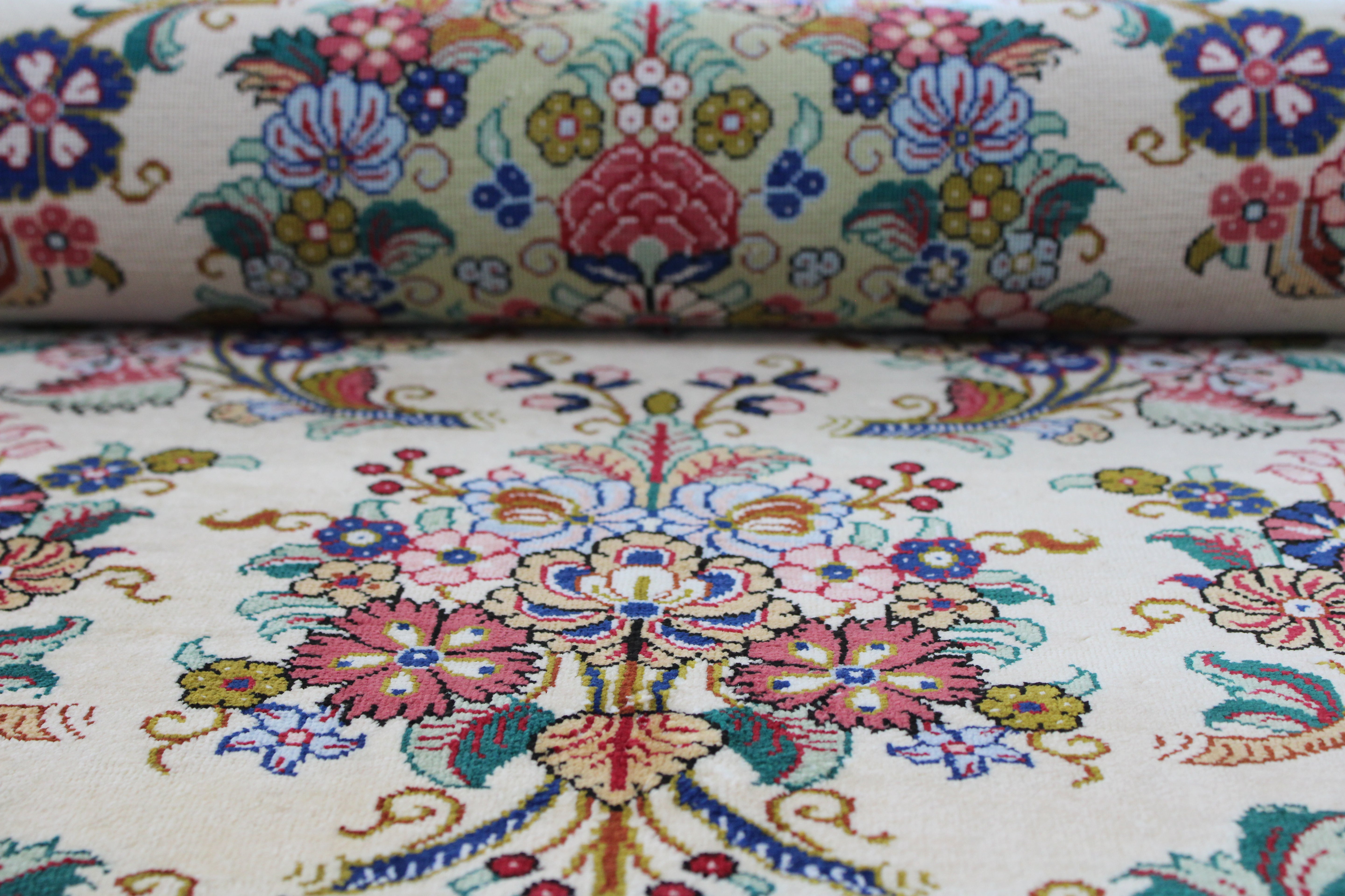 Silk is a fine natural fiber admired for its luxurious softness and luminous sheen. Its cultivation is a time-consuming, labor-intensive process, as it is carefully harvested from silkworms and processed by hand, making them often reserved for high-end handmade rugs. Pure silk rugs are rare and extremely costly, so the material is frequently blended with wool to add durability and make them more accessible. Rugs that feature silk are typically woven with high knot densities, enhancing both their value and artistry. The result is a rug with a radiant finish and intricate, striking designs that stand out as true works of art.